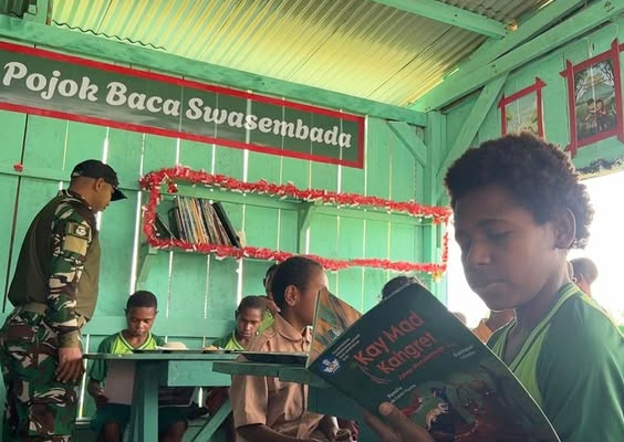 Toleransi di Bulan Suci: Pos Kotis Satgas Swasembada Yonif 751/VJS Gelar Makan Bersama Anak-Anak Sepulang Sekolah di Oksibil