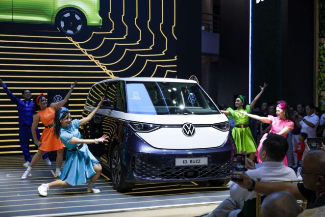 Peluncuran ID. Buzz Long Wheelbase menjadi sorotan utama, dengan kapasitas 6 penumpang, torsi 560 Nm, jarak tempuh 487 km, serta fitur unggulan seperti Panoramic Sunroof with Smart Glass dan sistem audio Harman Kardon.