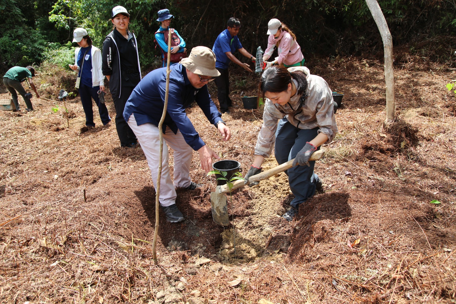 Kegiatan ini menjadi bukti nyata kolaborasi lintas bangsa dan generasi dalam melindungi bumi. Bersama Kesatuan Pengelola Hutan Produksi (KPHP) Minas Tahura dan Kelompok Tani Hutan mitra Tahura SSH, mereka menanam bibit meranti bunga (Shorea leprosula)—salah satu spesies langka yang kini mulai terancam.