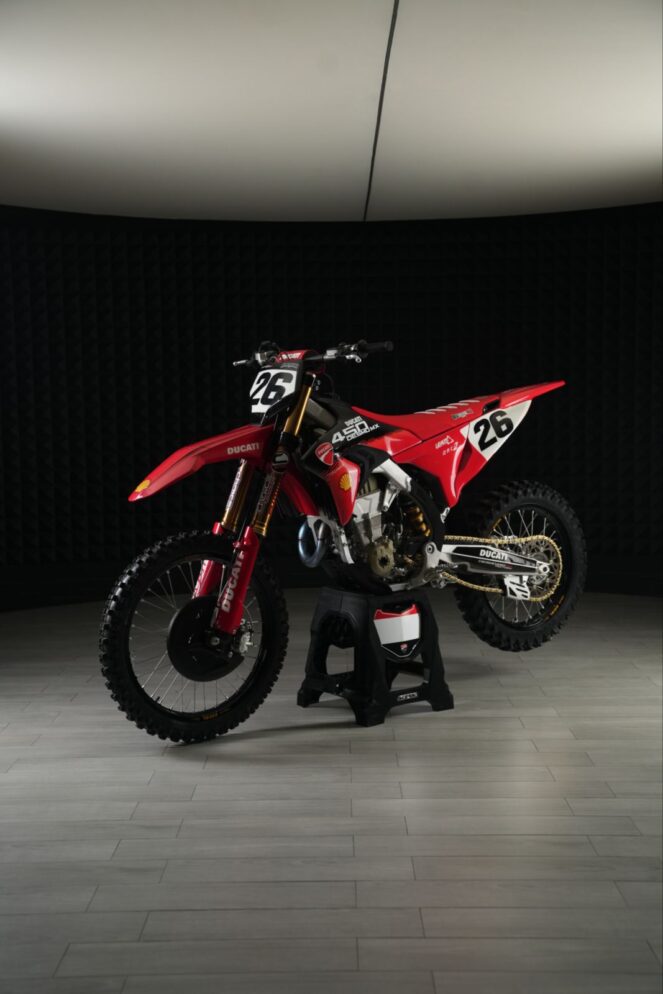 Memasuki musim 2026, Ducati juga akan menurunkan Ducati Desmo450 MX Factory untuk ajang nasional dan regional, dengan bobot lebih ringan, knalpot titanium Akrapovič, suspensi Showa berlapis Dark Kashima dan TiO, serta perangkat balap khas factory-spec.