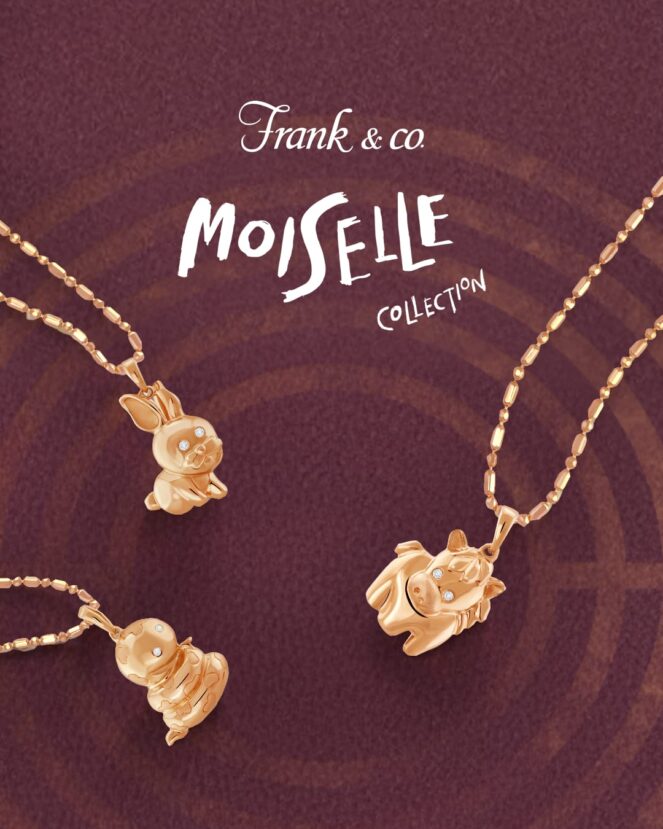 Berbeda pendekatan, Frank & co. menawarkan Moiselle Collection—rangkaian 12 liontin shio dalam desain yang lebih playful namun tetap sophisticated. Dibuat dari emas 18K dan dihiasi natural diamond pilihan, setiap pendant menonjolkan karakter unik masing-masing shio dengan detail presisi.