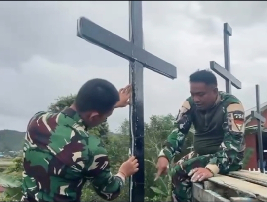 Dalam rangka menyambut perayaan Paskah, Satgas Swasembada Yonif 751/Vira Jaya Sakti (VJS) melalui Pos Komando Taktis (Kotis) Oksibil melaksanakan kegiatan teritorial berupa menghias gereja di sekitar pos, Kamis (26/03/2026).